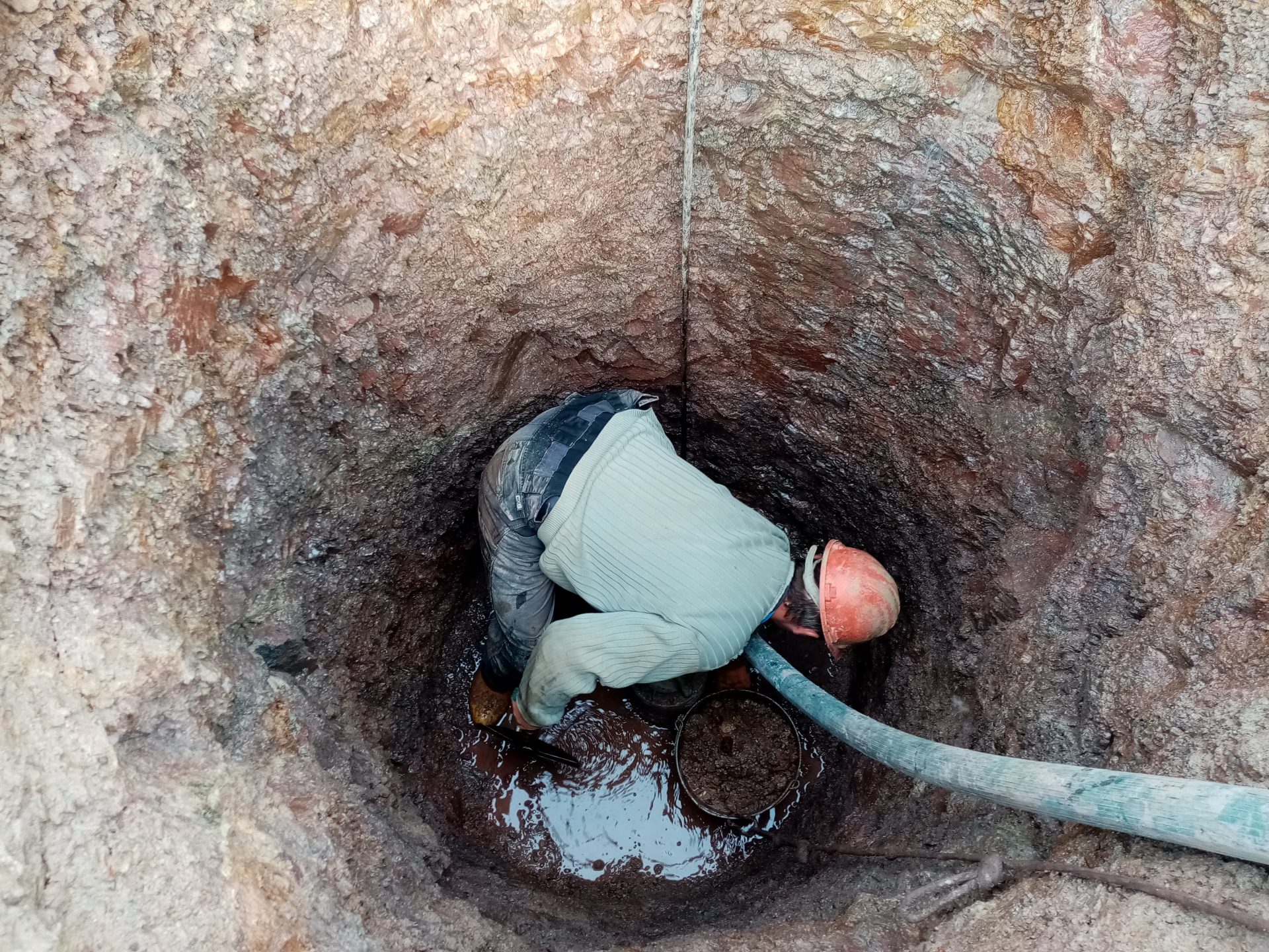 Poté začne samotné kopání pneumatickým kladivem a starou dobrou lopatou. Šachta se paží dle potřeby, buď od začátku nebo v průběhu prací, případně až na konci hloubení nebo se nepaží vůbec, například ve skále.